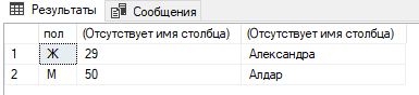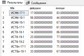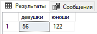 Подсчитать общее количество девушек и юношей. Должно выдать что-то такое: