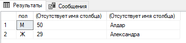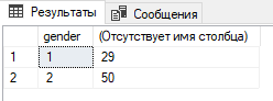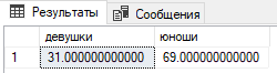 Подсчитать долю в процентах девушек и юношей. Должно выдать что-то такое: