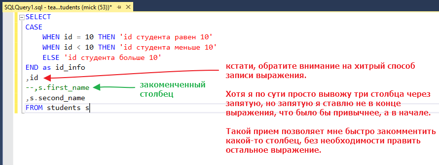 Вывести список студентов. Добавить вычислимое поле, если в строке студентка то в поле писать “девушка” а если студент то “парень”, ну или там тян/кун/мадам/месье, в общем шо я вам рассказываю, сами придумывайте…